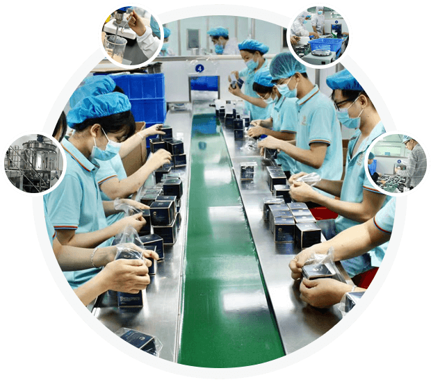 擁有3000多平方米GMPC10萬級凈化生產車間,全部利用高效風柜和風口組合技術,結合紫外線和臭氧殺菌,恒久保證潔凈程度10萬級不變,生產車間全部實行數字化管理,生產環節實現了即時監控,嚴密把控每一個生產細節,保證產品各項指標超出國家標準,工廠目前擁有粉單元車間,妝字號車間共7條半自生產線,擁有5條妝字號生產線,兩條海藻面膜全自動生產線
